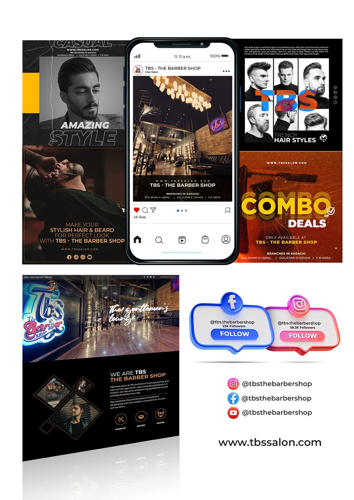 Projects in the salon category are always diverse, and working with TBS was no exception. With its revamped look, developing a design that captured the essence of a classic barbershop was both a challenge and a creative delight. From brand redesign to strengthening its identity across multiple platforms, we delivered striking visuals and strong branding. The refreshed look and social media optimization enhanced their presence and helped establish them as a standout in the industry.
